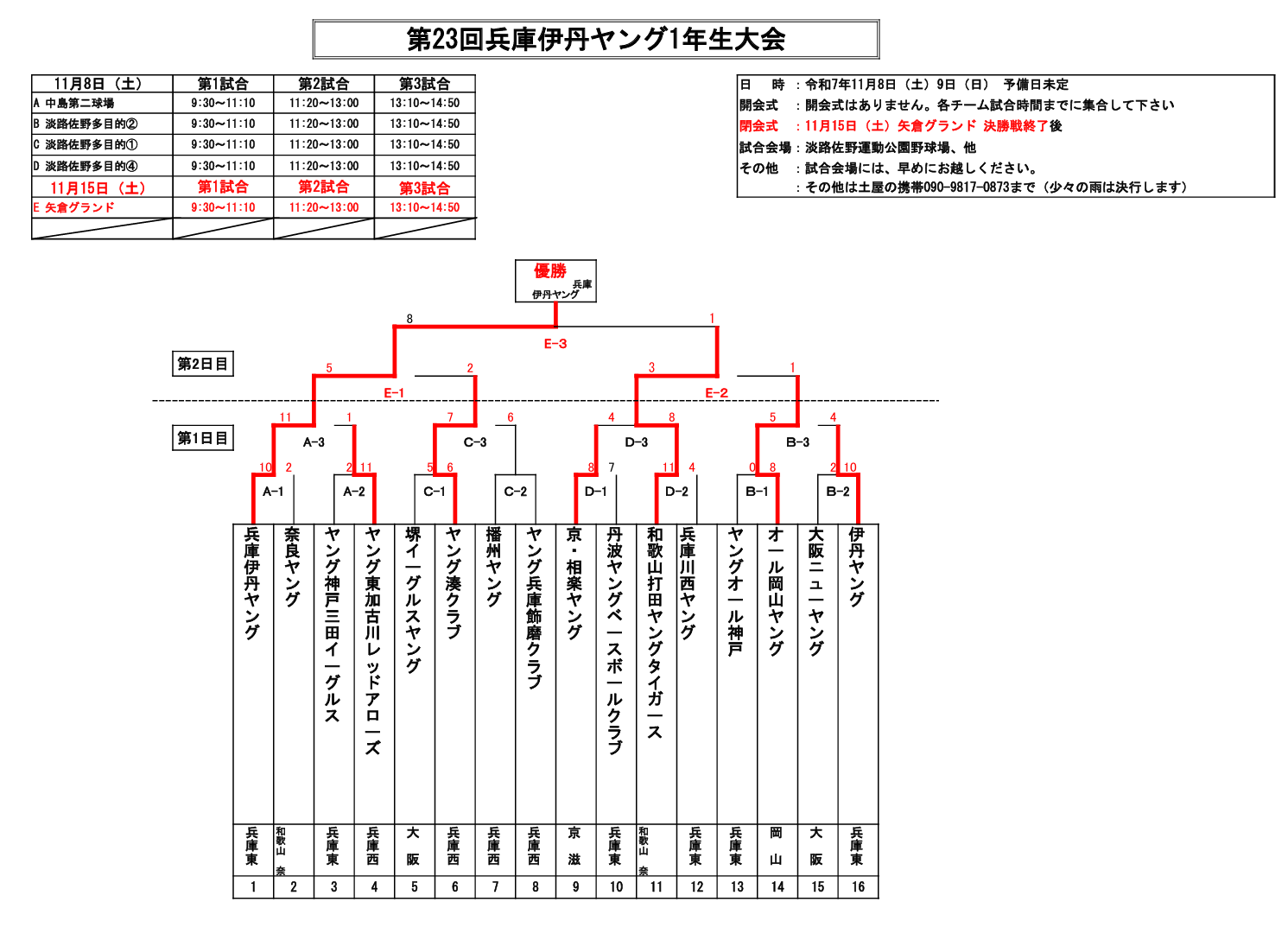 11月8日(土)~淡路佐野運動公園を中心に開催され兵庫伊丹ヤングが優勝しました。