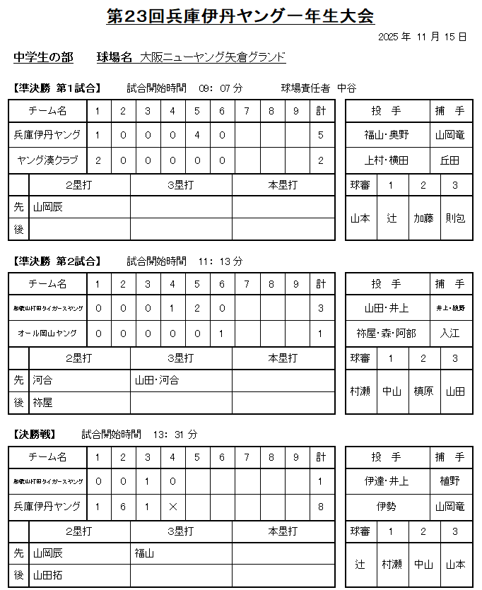 2025年 第23回兵庫伊丹ヤング1年生大会