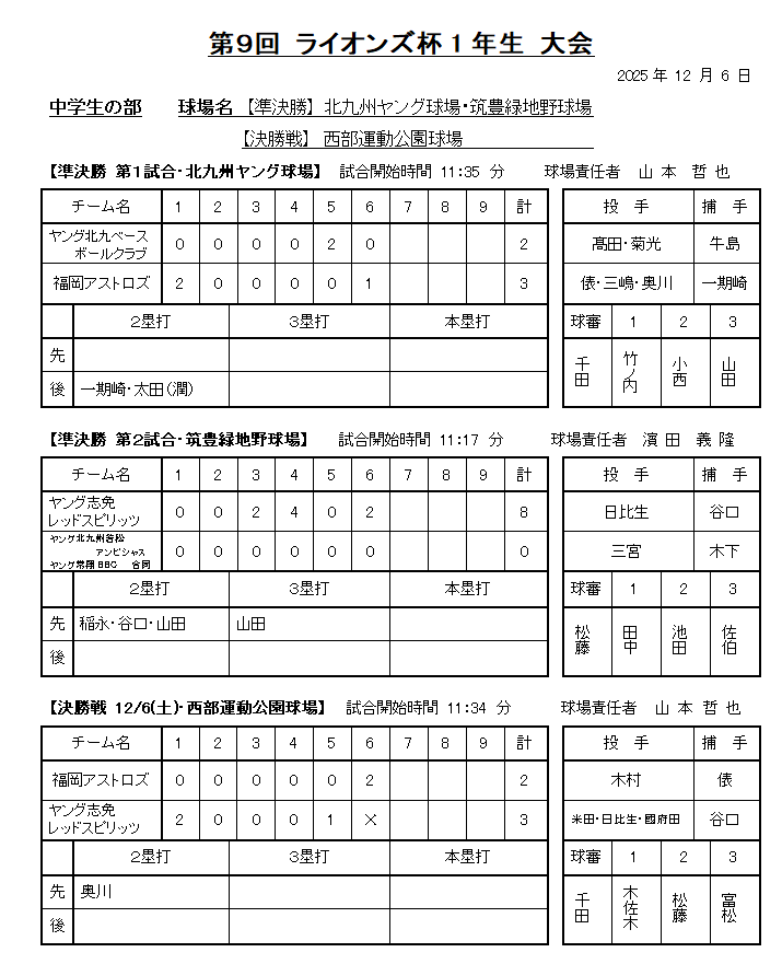 2025年 第9回 ライオンズ杯1年生大会