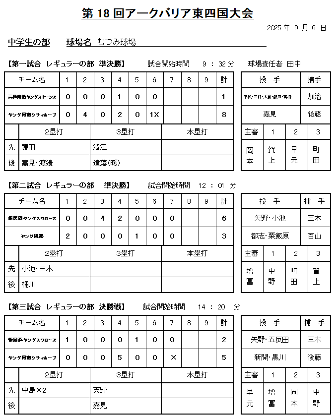 | 優勝 ヤング阿南シティホープ | 準優勝 新居浜ヤングスワローズ |